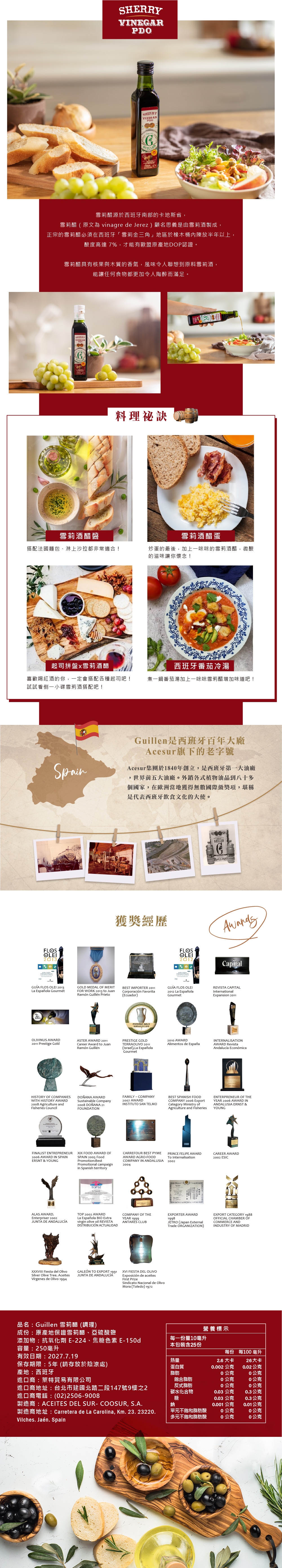 雪莉醋具有核果與木質的香氣,風味令人聯想到原料雪莉酒